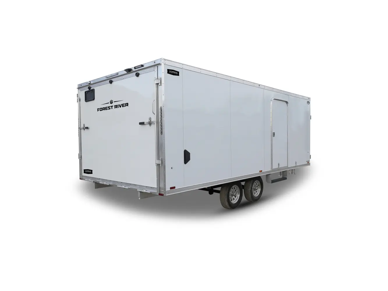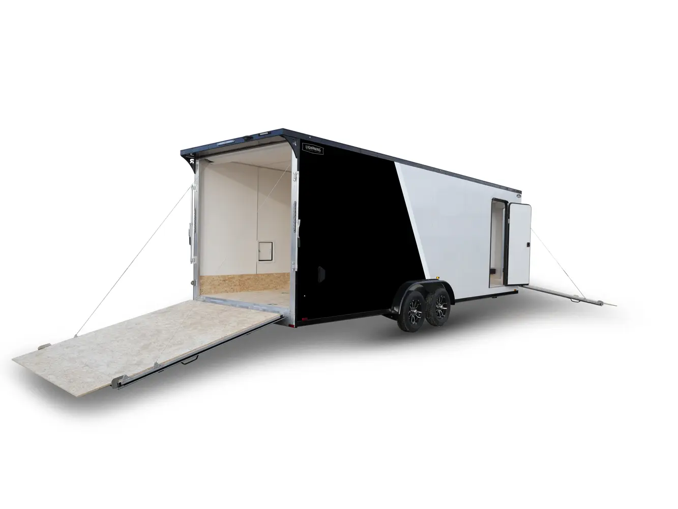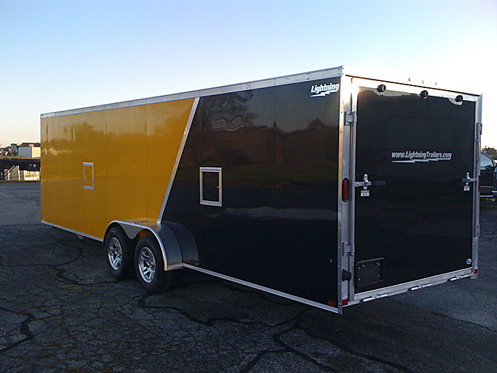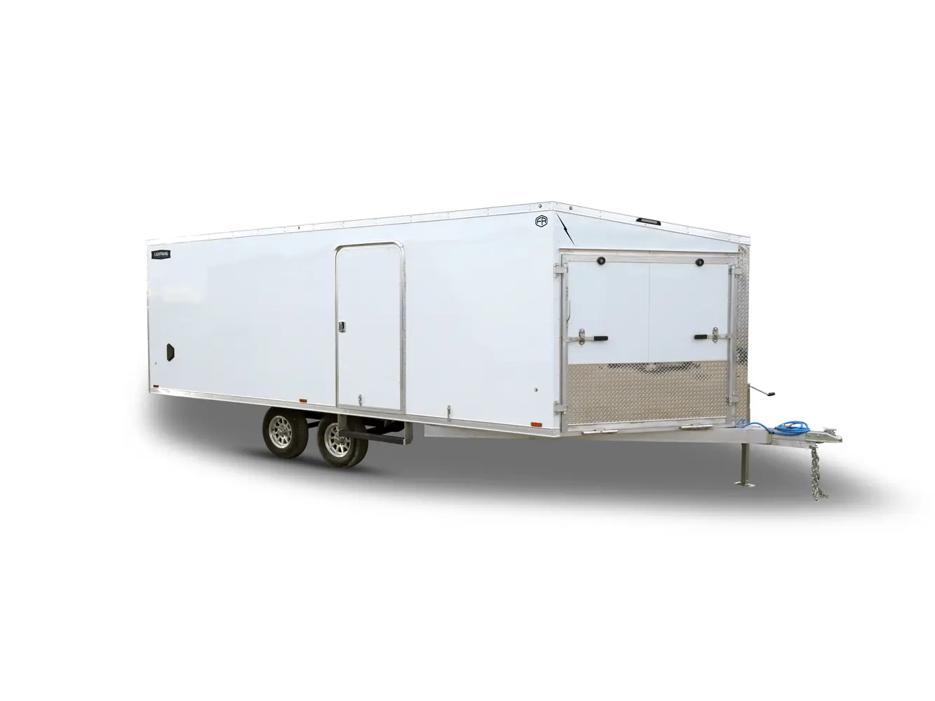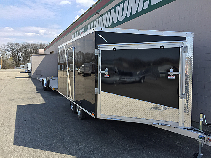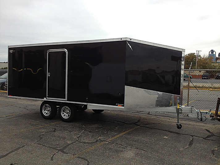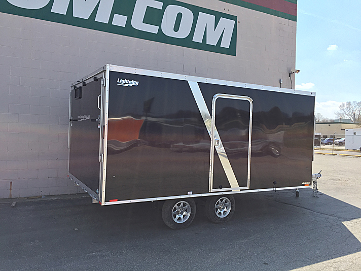 Lightning Enclosed Snowmobile Trailers are available in various sizes to accommodate between 2 and 4 snowmobiles at a time. They are available in both a 7’ wide “in-line” and the 8.5’ wide “deck-over” models. All models feature front and rear ramp doors for true “drive in-drive out” use. Our available Radar package includes many of our most popular options. Aluminum rims, white vinyl interior walls and fuel doors are just some of the features of the Radar Package.