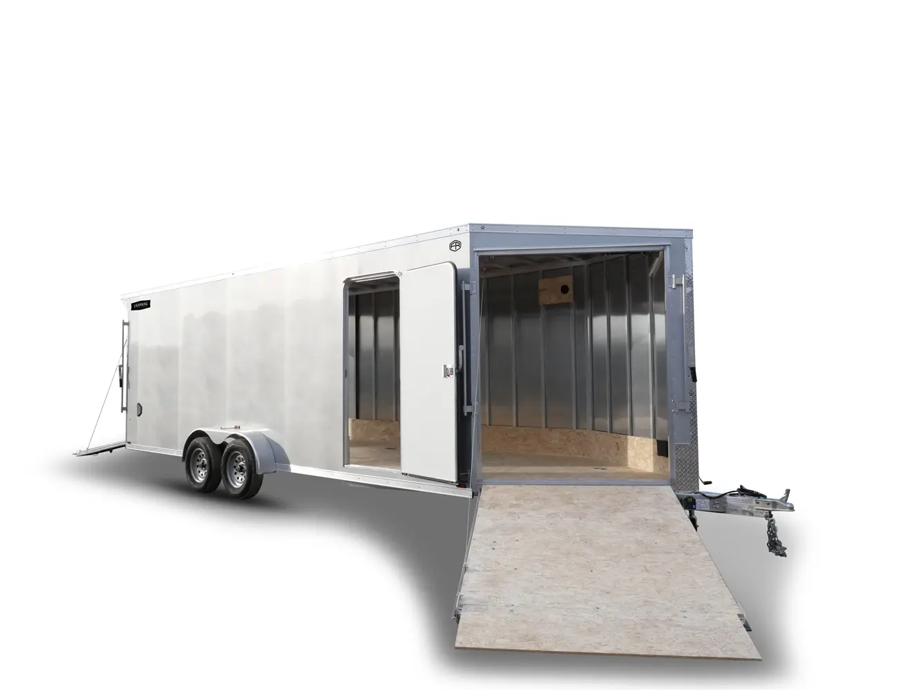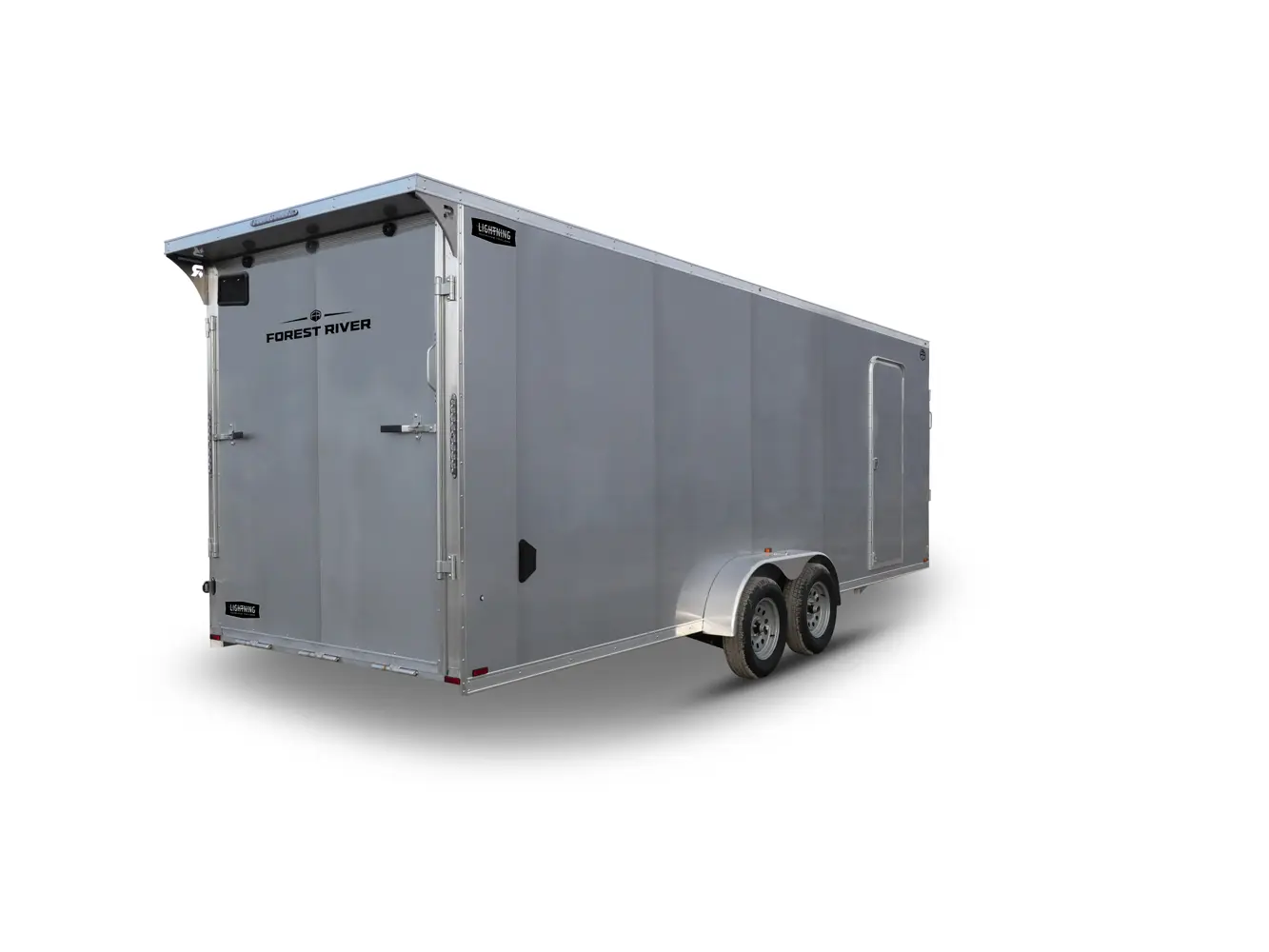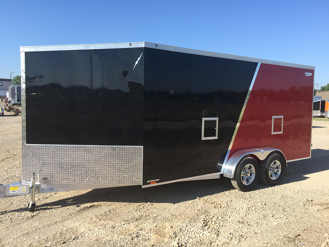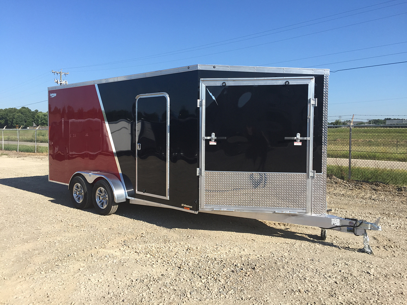 Lightning Enclosed Snowmobile Trailers are available in various sizes to accommodate between 2 and 4 snowmobiles at a time. They are available in both a 7’ wide “in-line” and the 8.5’ wide “deck-over” models. All models feature front and rear ramp doors for true “drive in-drive out” use. Our available Radar package includes many of our most popular options. Aluminum rims, white vinyl interior walls and fuel doors are just some of the features of the Radar Package.