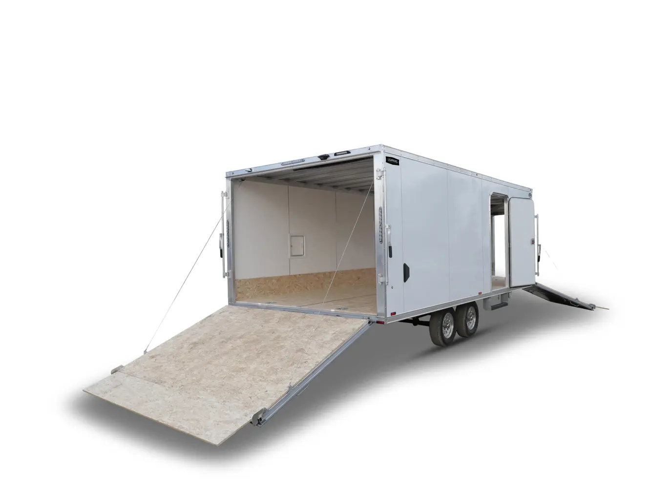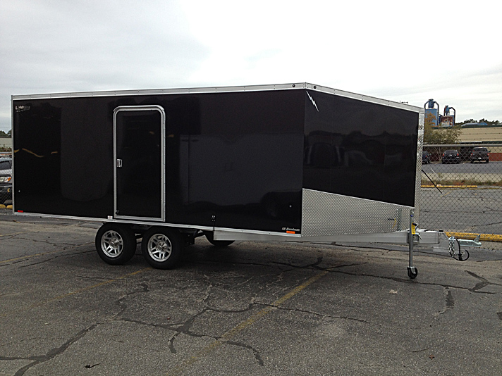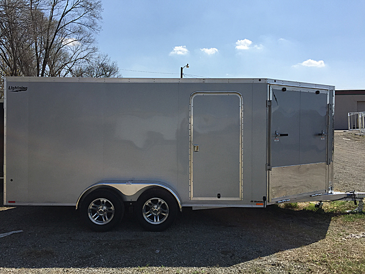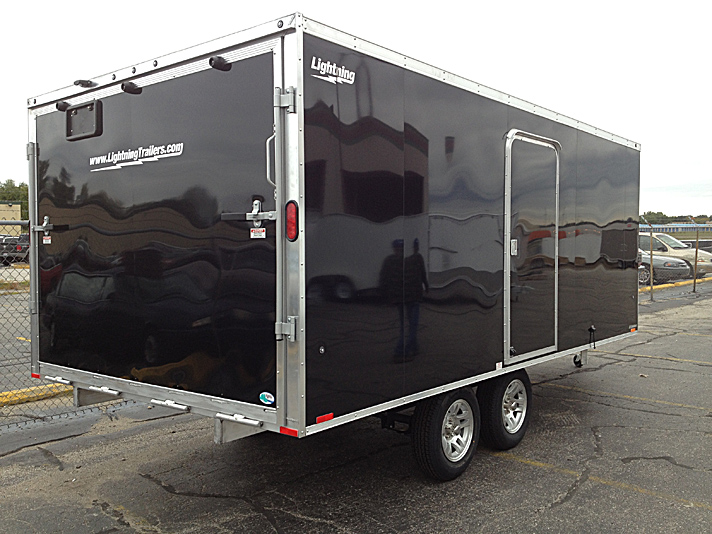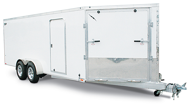 Lightning Enclosed Snowmobile Trailers are available in various sizes to accommodate between 2 and 4 snowmobiles at a time. They are available in both a 7’ wide “in-line” and the 8.5’ wide “deck-over” models. All models feature front and rear ramp doors for true “drive in-drive out” use. Our available Radar package includes many of our most popular options. Aluminum rims, white vinyl interior walls and fuel doors are just some of the features of the Radar Package.