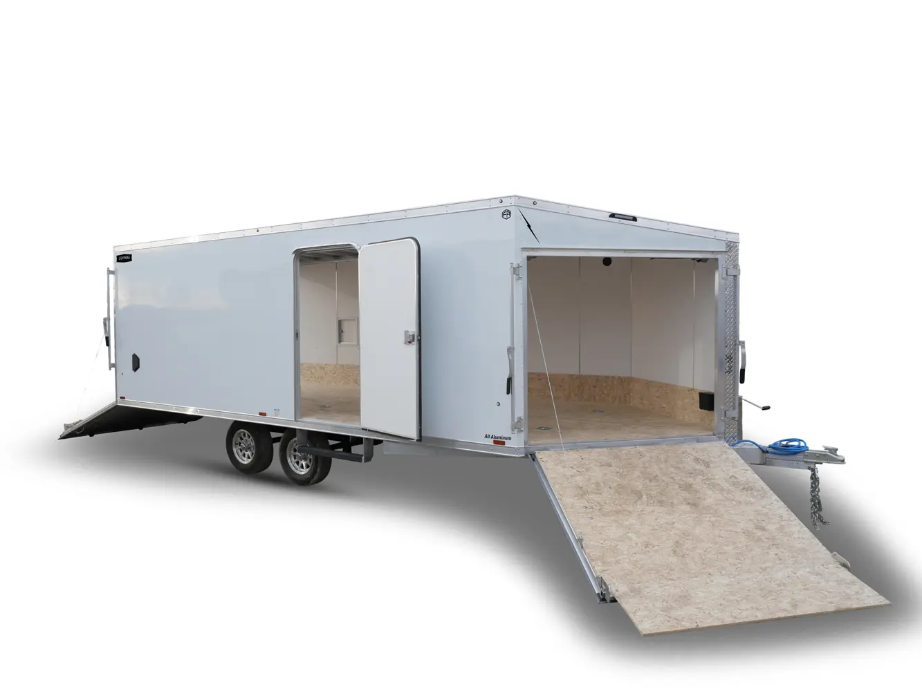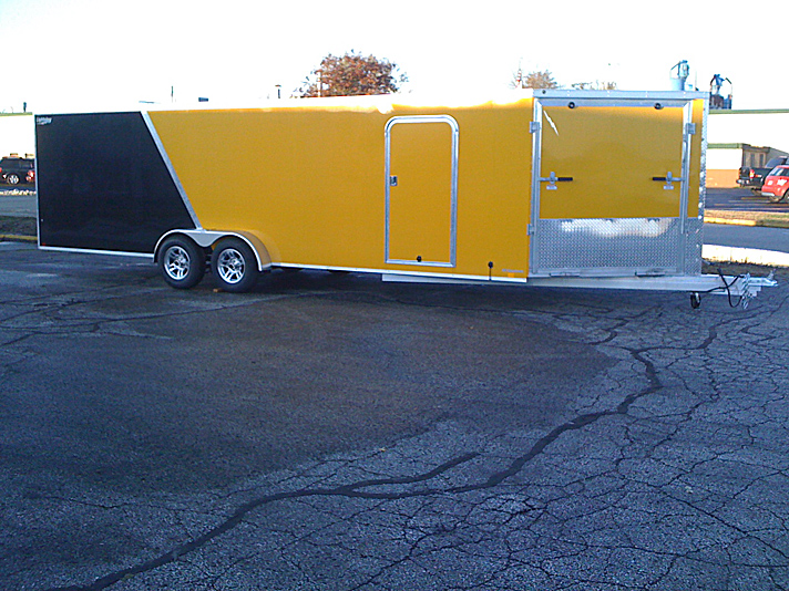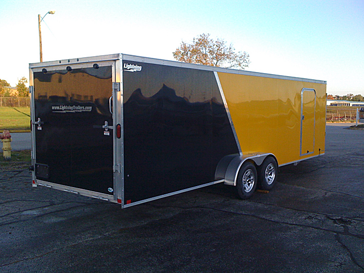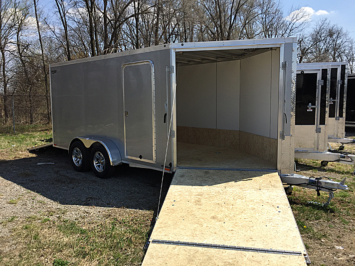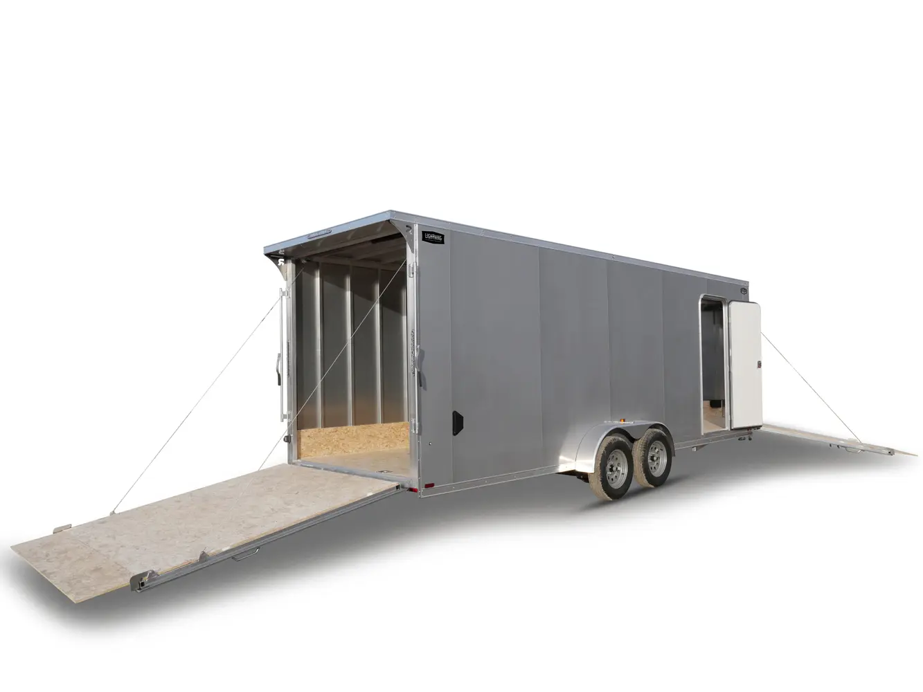 Lightning Enclosed Snowmobile Trailers are available in various sizes to accommodate between 2 and 4 snowmobiles at a time. They are available in both a 7’ wide “in-line” and the 8.5’ wide “deck-over” models. All models feature front and rear ramp doors for true “drive in-drive out” use. Our available Radar package includes many of our most popular options. Aluminum rims, white vinyl interior walls and fuel doors are just some of the features of the Radar Package.